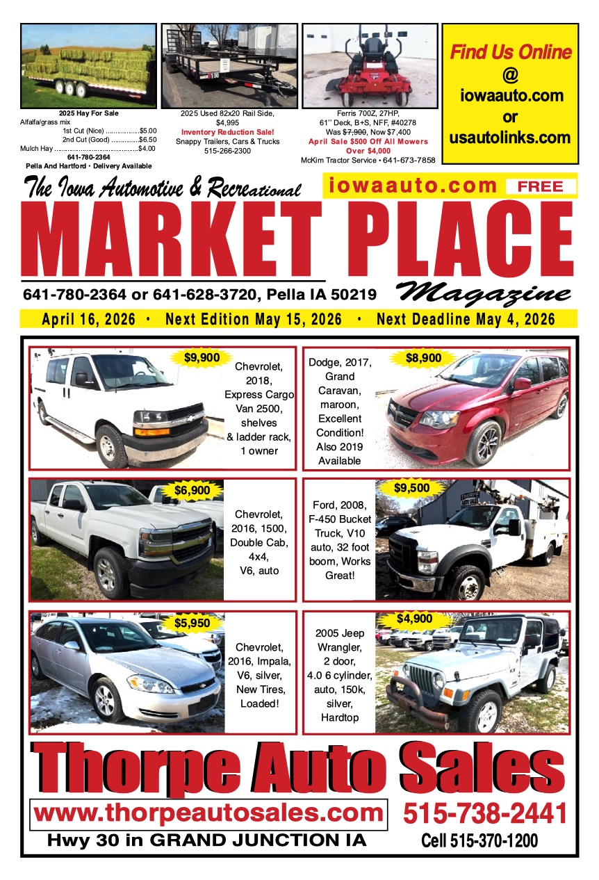 Iowa Auto Marketplace features local classifieds for cars, trucks, ag equipment, RVs, powersports, hay, motorcycles, repairable vehicles and more.